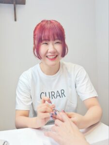 セルフネイルを趣味でしていたところから、お仕事でネイルがしたい!と思うようになり、CURARに入社しました。 何もできない状態からのスタートでしたが、サロンワークに特化したスクールでお仕事をさせていただきながら学んでお客さまに入客できるようになりました! 自分の苦手や悩みなどにも対応してくれるスクールの制度や、働き方や悩みに親身になって相談に乗ってくれる会社のサポートなどがあり、趣味だったネイルで自分らしく働くことができているのがとても嬉しく、私生活も仕事もとても充実しています!