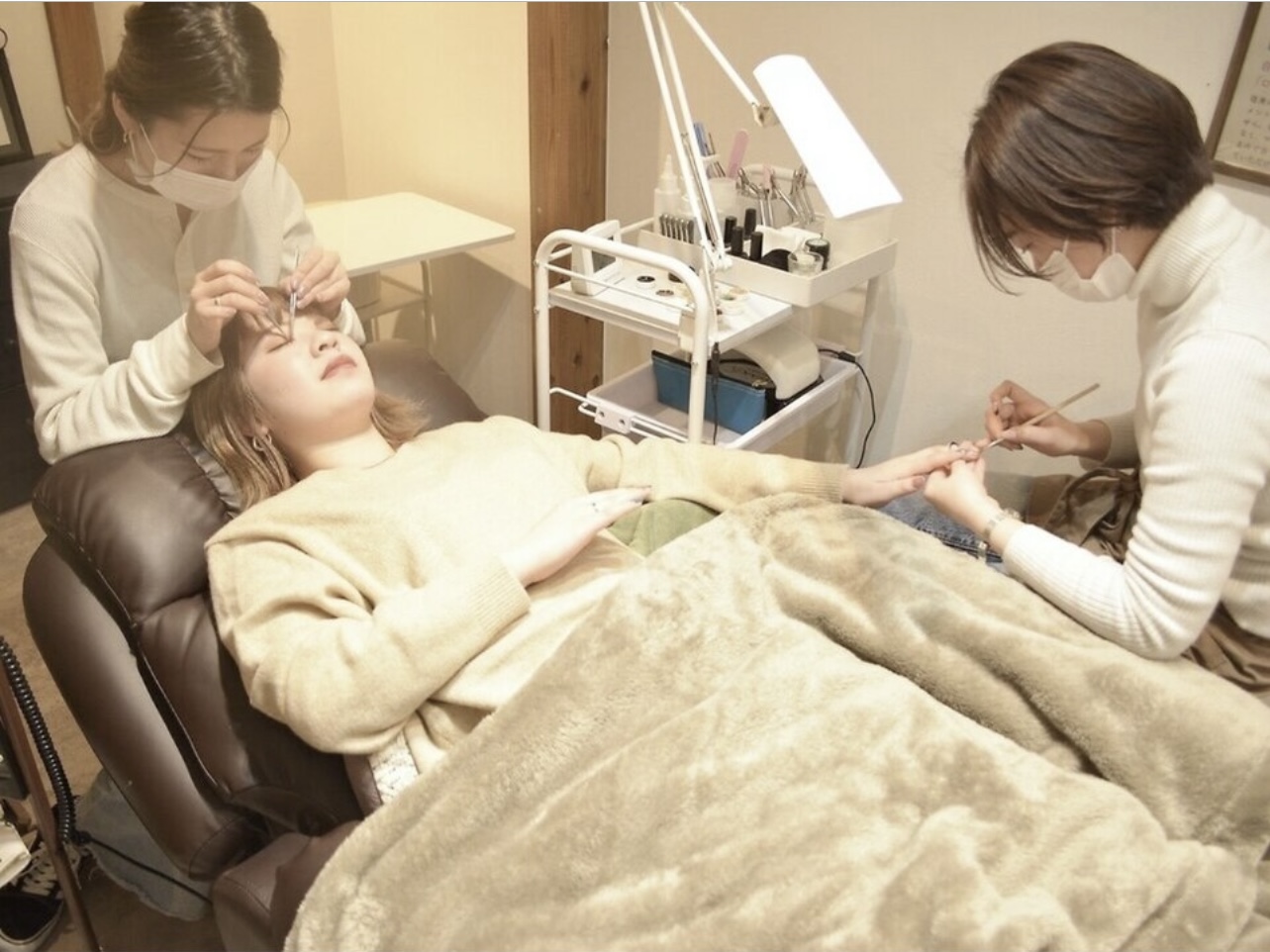 時にはまつ毛・ネイルの同時施術もあり。